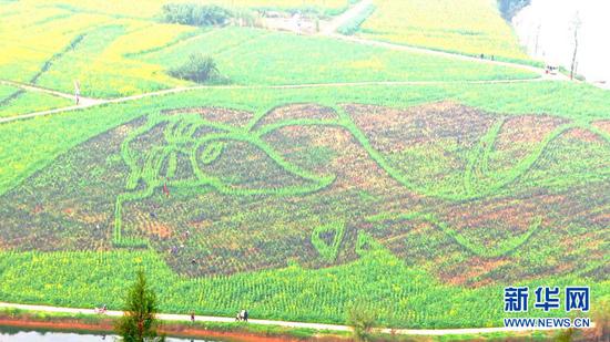 图为陈抟故里景区彩色油菜花盛开组成的图案。新华网发(陈晓航 摄)新华网重庆2月26日电(陈晓航)眼下,重庆潼南区崇龛陈抟故里景区彩色油菜进入花期,开出的花朵色彩斑斓,美不胜收 。 一沐春风万顷黄,油菜花开满地金。在潼南崇龛陈抟故里景区,竞相绽放的油菜花,形成蔚为壮观的金色花海。在花海丛中、小火车观光沿线两旁的油菜,却呈现出不一样的花色,这是景区首次种植的新品种——彩色油菜。“彩色油菜花是国内研发的观赏性新品种,有红,粉,紫,白四大色系,具有花瓣大,花期长,香味浓等特点。”湖南华彩农业科技公司负责人伍威龙表示。 据了解,彩色油菜花采用杂交育种、系谱选育等多种选育方法,使不同花色基因重新组合,促使油菜花色种类不断更新。景区新增的彩色油菜花除直观效果外,还具有更重要的用途。“今年种植有300多亩彩色油菜花,首次利用3D技术将其在花中打造了太极、睡仙等9处大地艺术景观。在陈抟山观赏,呈现出立体的视觉效果,最佳观赏期在三月中旬左右。”潼南区崇龛陈抟故里景区负责人田达永说。 需要提醒的是,受疫情影响,目前景区还处于封闭阶段,当地将根据分区分级管理情况适时开放,同时将推出云端360度鸟瞰油菜花,市民在家也能欣赏到潼南的油菜花美景。 图为油菜花组成的陈抟图案。新华网发(陈晓航 摄) 图为种植的彩色油菜。新华网发(陈晓航 摄) 图为油菜花盛开景象。新华网发(陈晓航 摄) 图为金黄色油菜花即将盛开。新华网发(陈晓航 摄)
